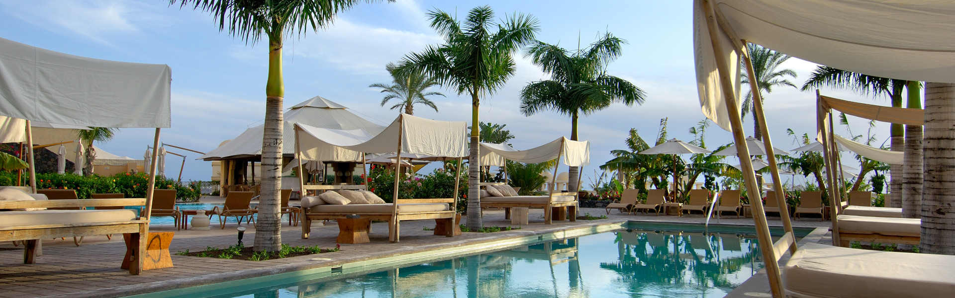 - Zes zwembaden, waaronder een kinderbad, omgeven door tropische tuinen en een solarium.
