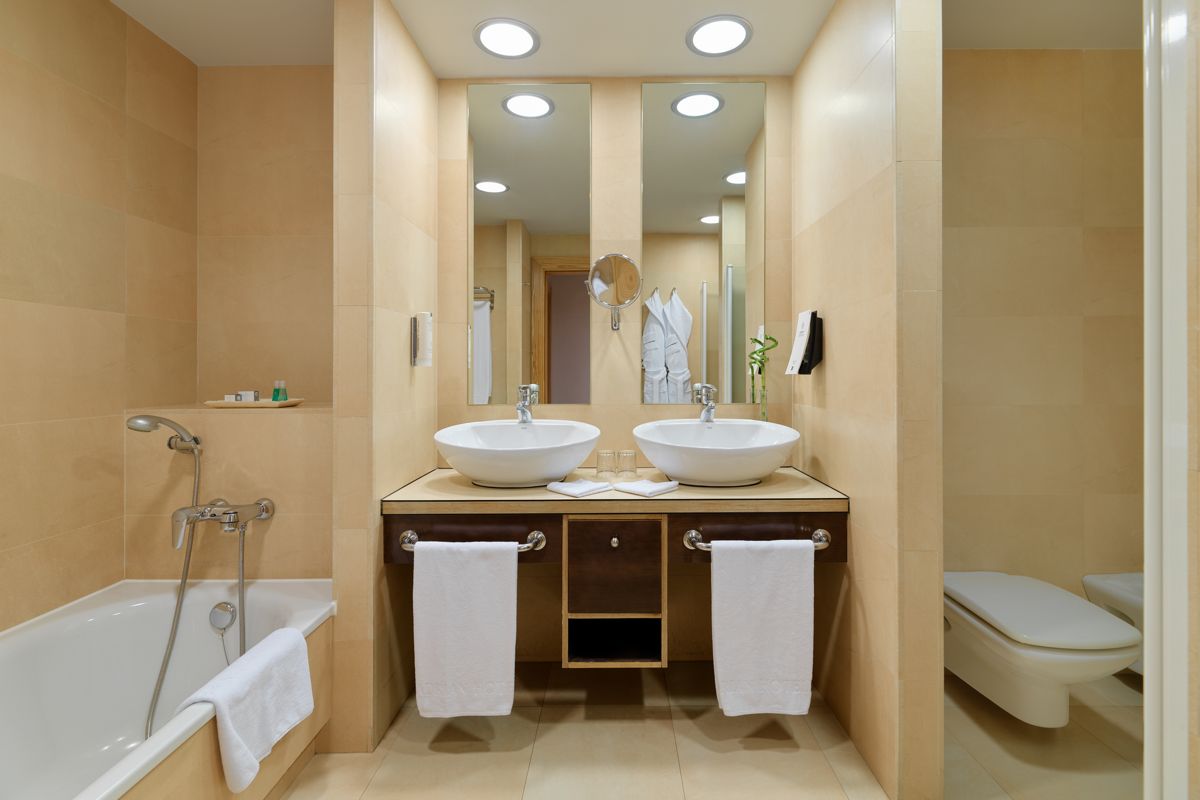 - Kamers met minibar, Nespresso koffiezetapparaat en waterkoker, individuele airconditioning het hele jaar door, SAT-TV met muziekkanalen, telefoon, haardroger, badjas en slippers, gemeubileerd balkon of terras en 24-uurs roomservice.