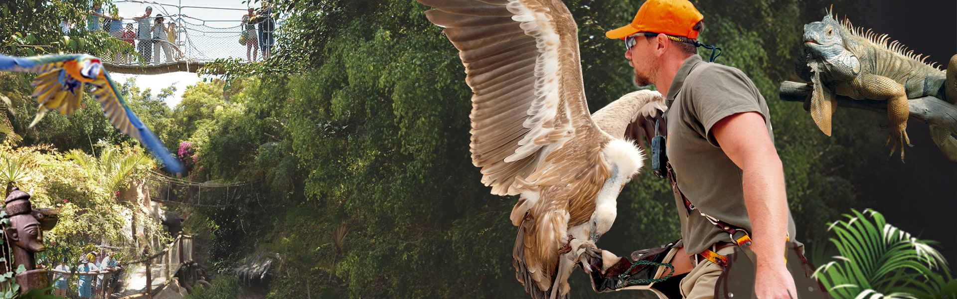 Het is de enige jungle in Europa met wilde vegetatie, en met 75.000 vierkante meter is het de thuisbasis van meer dan 400 dieren en meer dan 100 verschillende soorten. Je zult de 2 ongelooflijke shows, zeeleeuwen en roofvogels niet kunnen vergeten. Geniet van het voeren van Humboldt-pinguïns, wasberen en neusberen. Adelaars, valken, gieren, maraboes, kraanvogels, ibissen, flamingo's, zwanen, ooievaars, papegaaien, ara's, papegaaien, toekans, kasuarissen en een eindeloos aantal exotische vogels die, als je geluk hebt, met hun vaardigheden een meer artistiek tintje geven aan ons kleine paradijs.